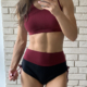 Strój Luna w kolorze czarnym. Uszyty jest z mocno elastycznej i połyskliwej tkaniny. Top na szerokich ramiączkach z ozdobnymi paseczkami ułożonymi na krzyż, wewnątrz posiada miejsce na wkładki. Szorty typu brazyliany z wysokim sanem i paseczkami na udach. Eksponują pośladki i podkreślają talie, dodatkowo z modelująca gumką na pupie. We wszystkich paseczkach wszyte są gumki, nie wrzynają się. Komplet będzie świetnym wyborem dla każdej kobiety chcącej się wyróżnić. Doskonale leży, a jeszcze lepiej prezentuje się na żywo.