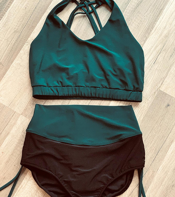Strój do Pole Dance Madera w kolorze czarno-zielonym. Dostępny także czarno-bordowy.