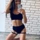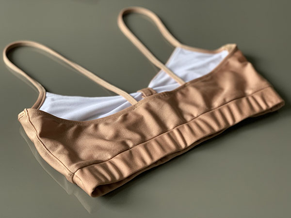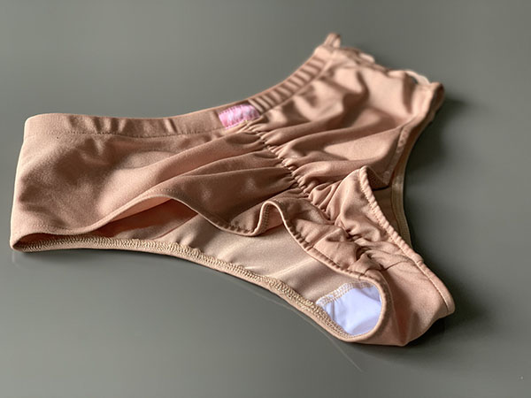 Strój do Pole Dance Marilyn w kolorze beżowym. Uszyty jest z mocno elastycznej i lekko połyskliwej tkaniny. Delikatny top z ozdobnym wycięciem, posiada miejsce na wkładki. Szorty typu brazyliany z ozdobnymi wycięciami z jednej strony, marszczone na pupie. Bardzo kobiecy i seksowny fason. Doskonale leży, a jeszcze lepiej prezentuje się na żywo.