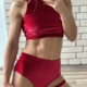 Strój Wena w kolorze fioletowym. Uszyty jest z elastycznego i wygodnego weluru. Top na szerokich ramiączkach z dekoltem w serek, posiada miejsce na wkładki. Szorty klasyczne z podwyższonym stanem i marszczeniem na pupie. Sprawdzi się na każdy rodzaj sylwetki.