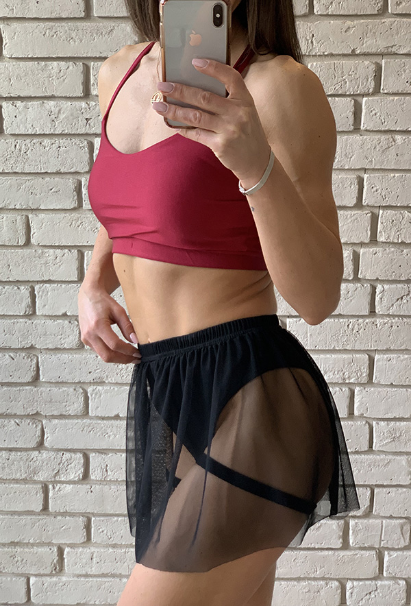 Spódniczka Paris w kolorze czarnym, uszyta jest z elastycznej tkaniny siateczkowej. Idealnie pasuje do czarnych brazylian.